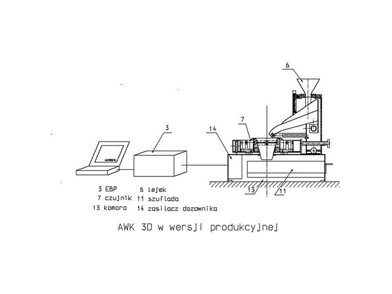 Zbudowano analizator AWK 3D służący do: trójwymiarowego pomiaru w warunkach laboratoryjnych uziarnienia materiałów sypkich (w tym określania kształtu) np. surowców mineralnych (drobnych kruszyw, żwiru, grubych piasków) węgla, nasion roślin oraz granulatów spożywczych czy nawozów sztucznych w zakresie od 0.2 do 15 mm. Analizator pozwala na pełną symulację pomiarów według sit mechanicznych i szybką kontrolę granulacji materiałów. Może być wykorzystany do optymalizacji procesu mielenia czy doboru mieszanek.