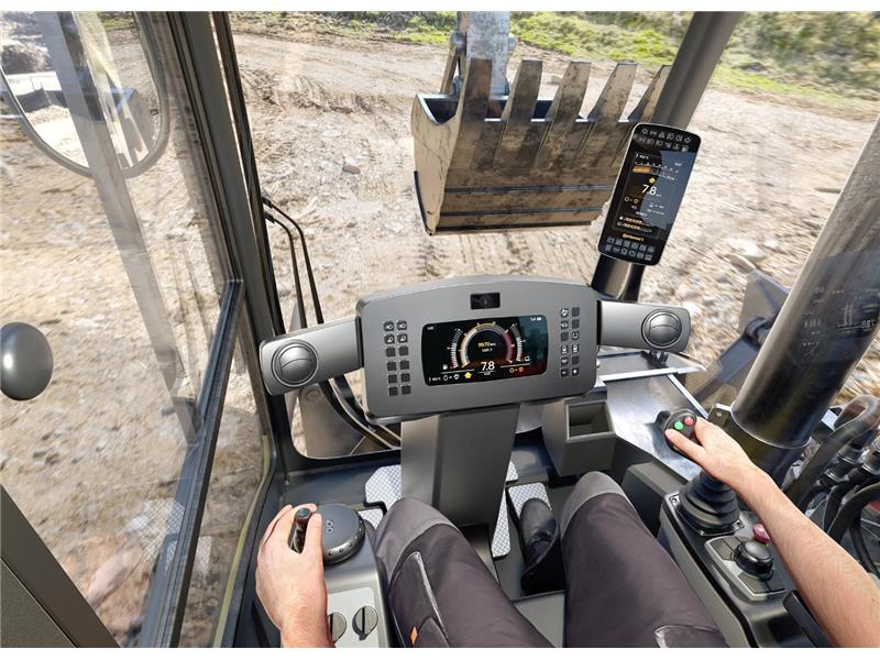 Lindner wykorzystuje wyświetlacz jako panel informacyjny oraz ekran do obsługi kamer i funkcji dodatkowych. Konfiguracja pionowa świetnie sprawdza się jako rozszerzona przestrzeń robocza operatora.