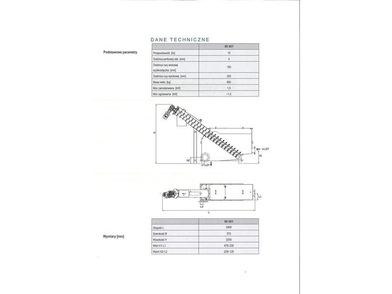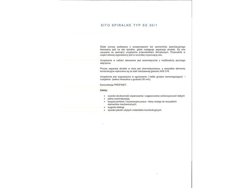 Sito spiralne jest urządzeniem w całości sterowanym autoamtycznie z możliwością ręcznego wyłączenia- specyfikacja w załącznikach.