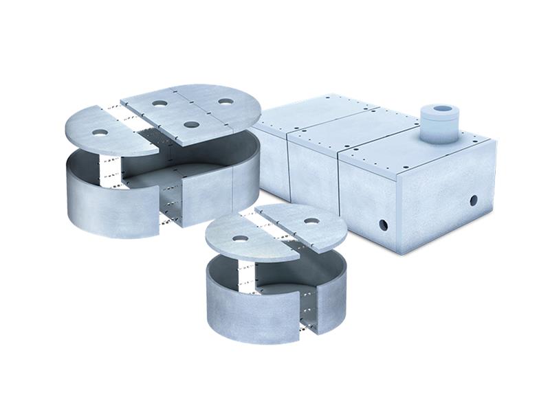 Zbiorniki EU to grupa produktów o przekroju owalnym i kołowym (Dw 4600, 5000, 5600, 6000 mm) wykonana z żelbetu (wg normy PN-EN 206-1). Każdy typ zbiornika może składać się z półokrągłych elementów dennych, kręgów nadbudowy, pokrywy oraz elementu przedłużającego EU-U